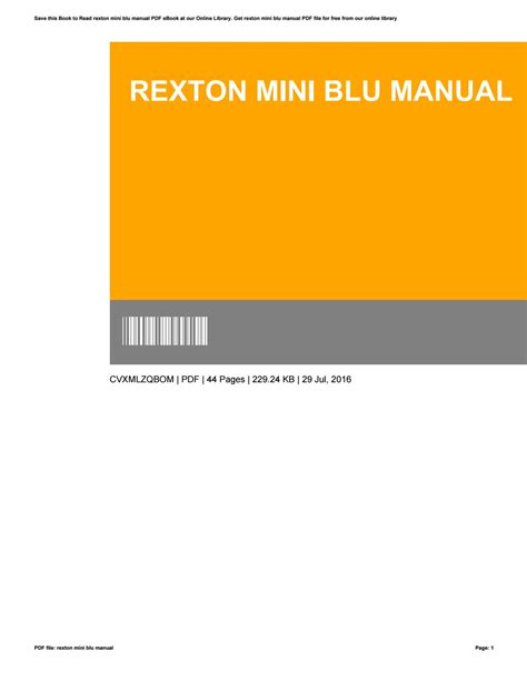 Download online User Manual Rexton Mini Blu Rcu Kobo ManyBooks